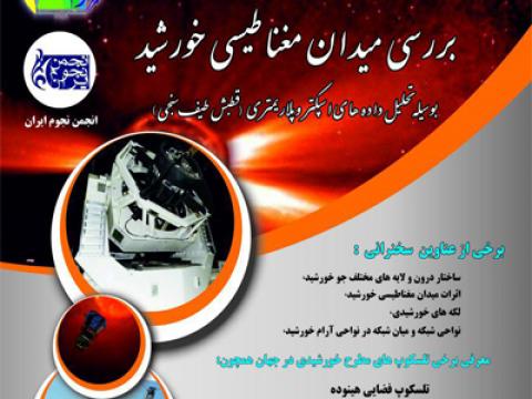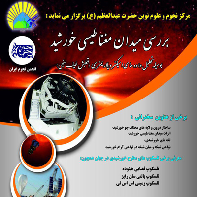 مركز نجوم و علوم نوين آستان مقدّس در راستاي آماده سازي و معرّفي همايش ملي تازه هايي از فيزيك خورشيد و اهداي نهمين دوره جايزه علمي - ترويجي حضرت عبدالعظيم عليه السلام كه در اسفند ماه برگزار ميگردد ، اقدام به برگزاري كارگاه علمي بررسي ميدان مغناطيسي خورشيد بوسيله تحليل داده هاي اسپكتر و پلاريمتري (قطبش طيف سنجي) در اول دي ماه نموده است .