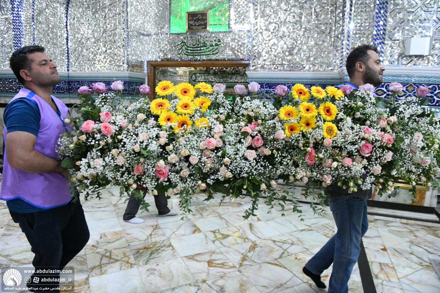 گل آرایی حرم مطهر در ایام ولادت حضرت جوادالائمه و امیرالمومنین علی ابن...