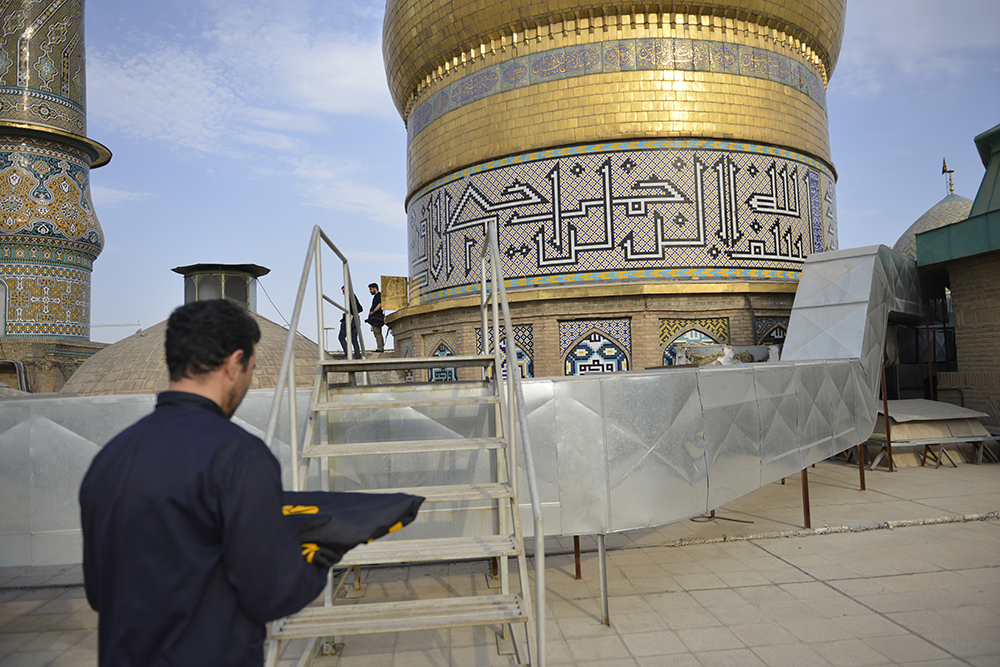 تعویض پرچم گنبد آستان مقدس به مناسبت عید سعید قربان / عکس: جلال اسدی