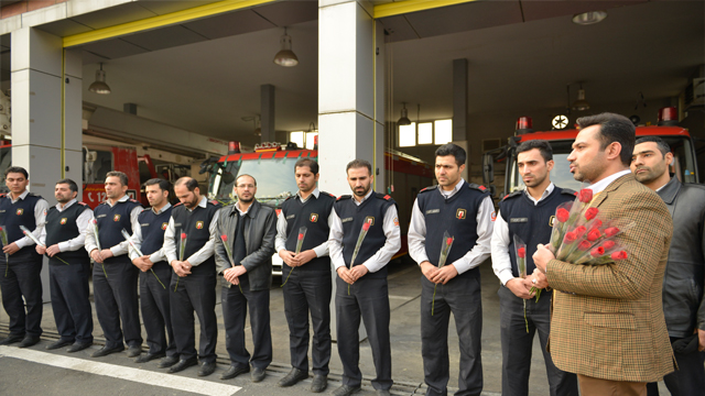 پرسنل آتشنشاني و خادمين آستان مقدّس حضرت عبدالعظيم عليه السّلام در روز يكشنبه 3 بهمن ماه جهت تسکین آلام و همدردی با اعضاء بزرگ خانواده آتش نشانان در حادثه دردناك حريق ساختمان پلاسكو با حضور در ايستگاه آتشنشانی شهيد رحمانی شهرری با پرسنل آتش نشان ابراز همدردی نمودند.