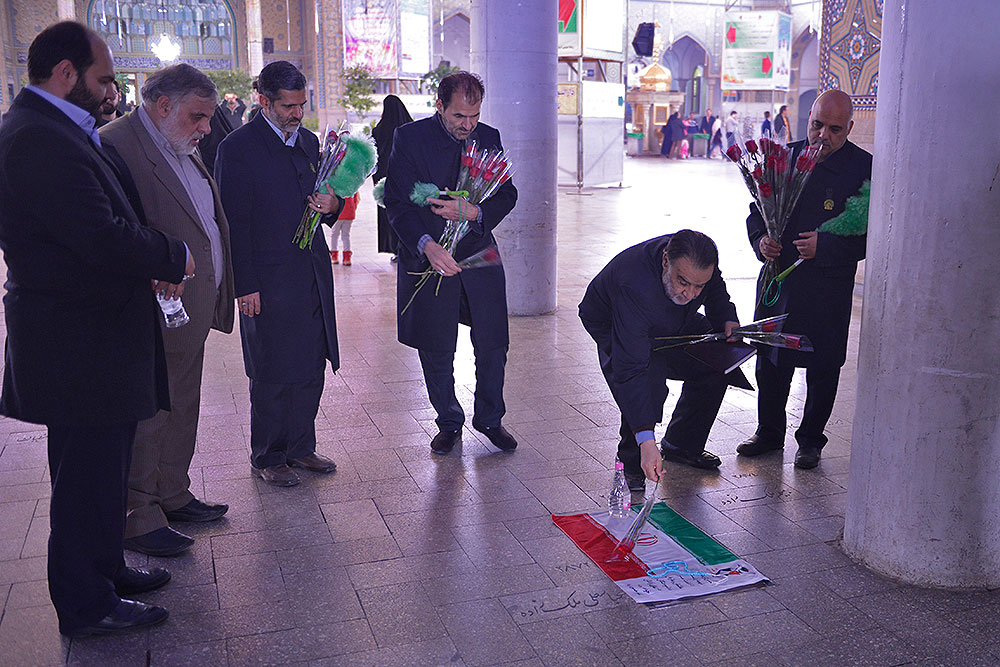 گل افشانی قبور شهدای مدفون در حرم - 96.9.30 اولیازاده