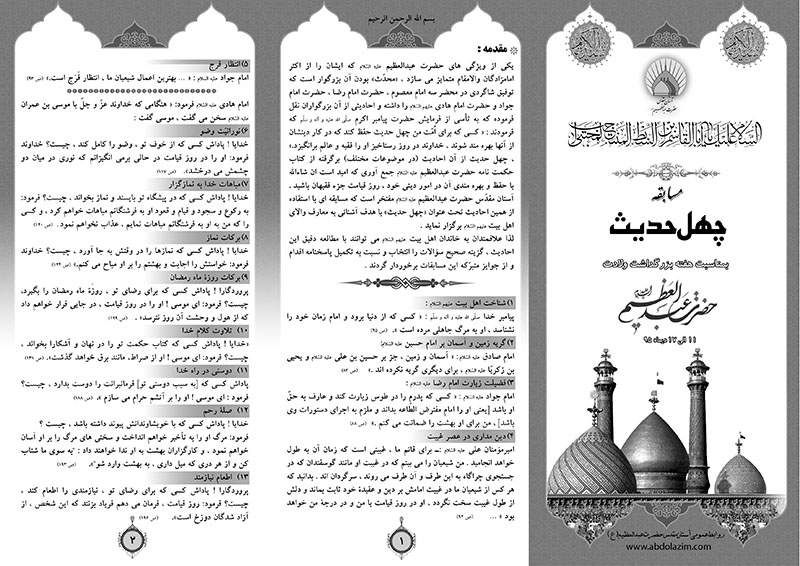 © تمامی حقوق مادی و معنوی این پایگاه متعلق به آستان مقدس حضرت عبدالعظیم (علیه السلام) می‌باشد. استفاده از مطالب با ذکر منبع بلامانع است.