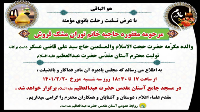 14156--عکس۱۴۰۱/۰۲/۱۸برگزاری مراسم یادبود والده مکرمه حجت الاسلام و المسلمین قاضی عسکر در آستان مقدس